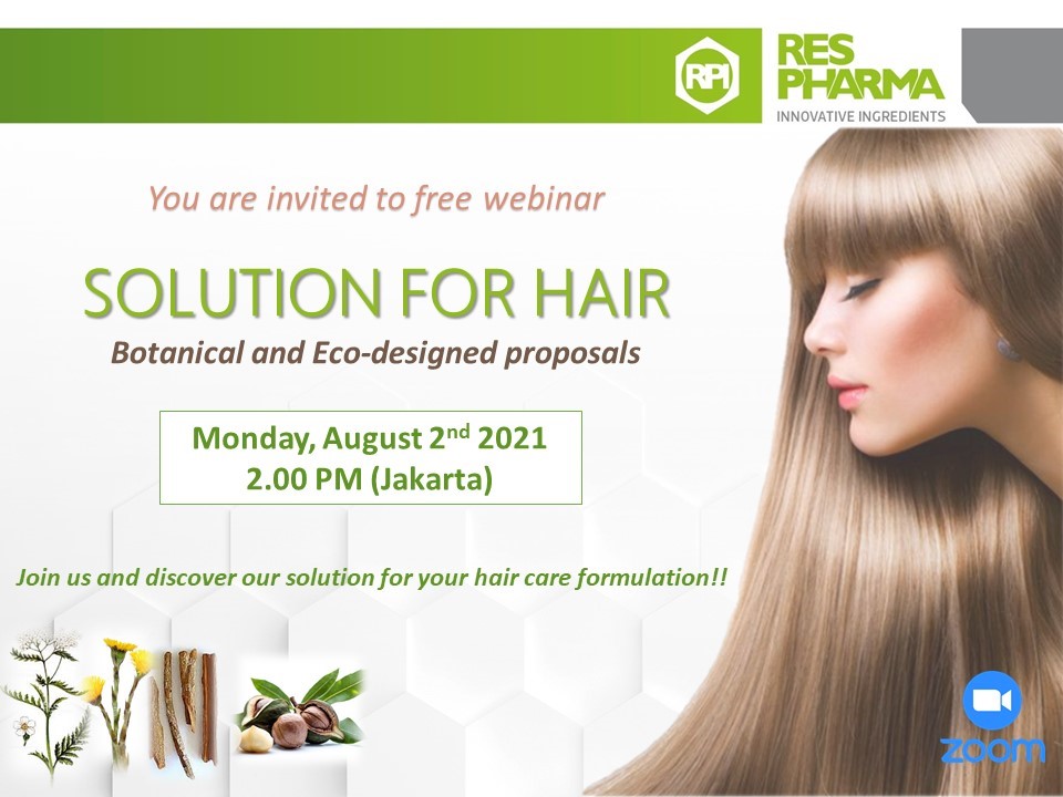 Respharma Srl together with PT. Kemiko Indonesia, Jakarta held a webinar entitled “Solution for Hair” on Monday, August 2, 2021. There were 43 customers attended the webinar with Mrs. Beata Troszynska as a speaker. The presentation was about ingredients and formulations with botanical and eco concept for hair care.