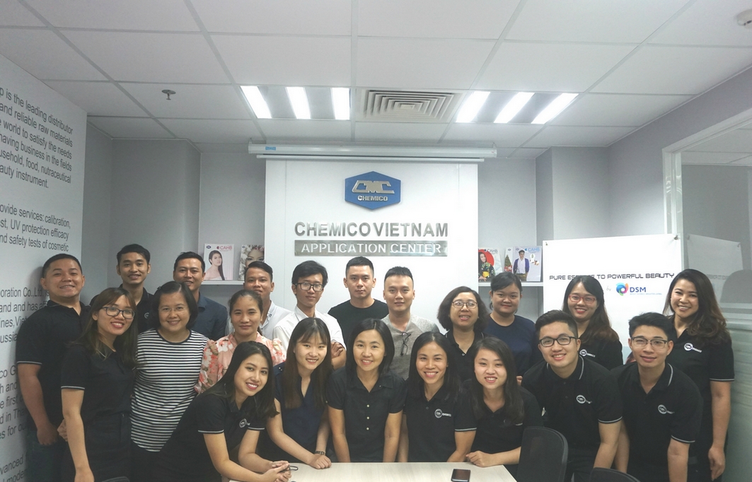 DSM, Switzerland teamed up with Chemico Vietnam Co., Ltd. to hold a mini seminar on May 17-18, 2018 at Chemico Vietnam Application Center, Vietnam entitled “Challenge Sunlight within Comprehensive Protection” and “Pure Essence to Powerful Beauty”. During 2 days of seminar, many new agents of sunscreen, sleeping masks, anti-aging, whitening, and moisturizing were introduced as well as market trend update. Customers also had a chance to formulate many kinds of sunscreen and sleeping masks formulation.