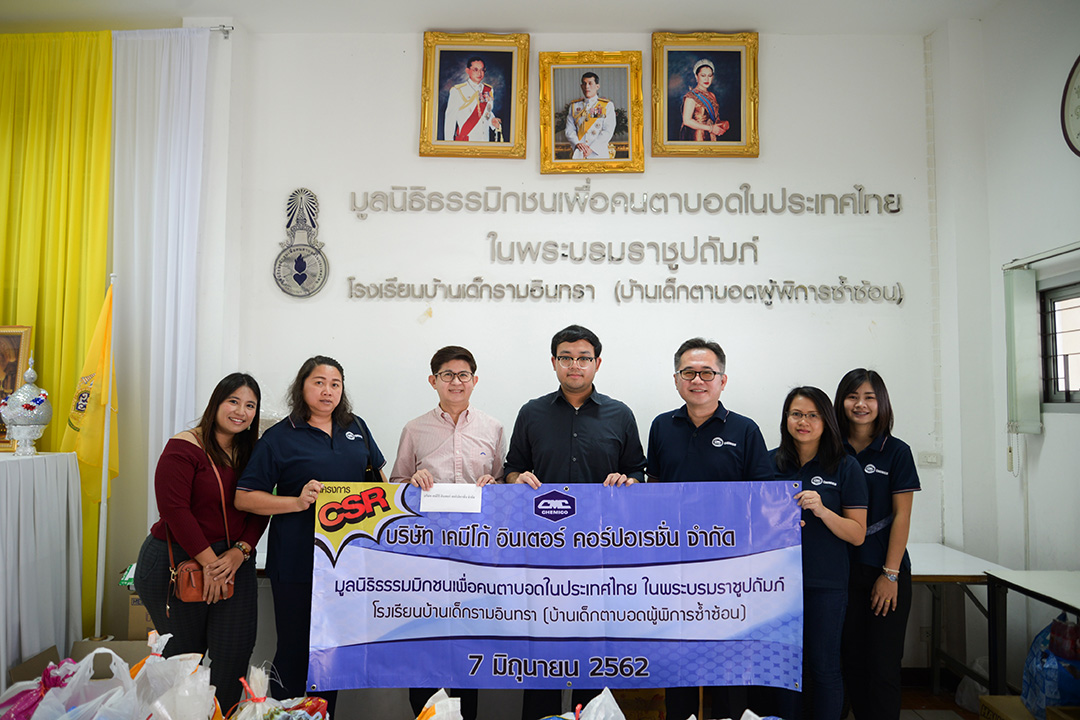 On June 7, 2019, Chemico Inter Corporation Co., Ltd. by Mr.Sinchai Kasemcheunyot, Deputy Managing Director, Mr.Sombat Kaoian and staffs donated basic supplies, foods and money to The Christian Foundation for the Blind in Thailand, under Royal Patronage, and Ban Dek Ramindra School. This event is one of the CSR activities that the company has been continuously given back to the society.