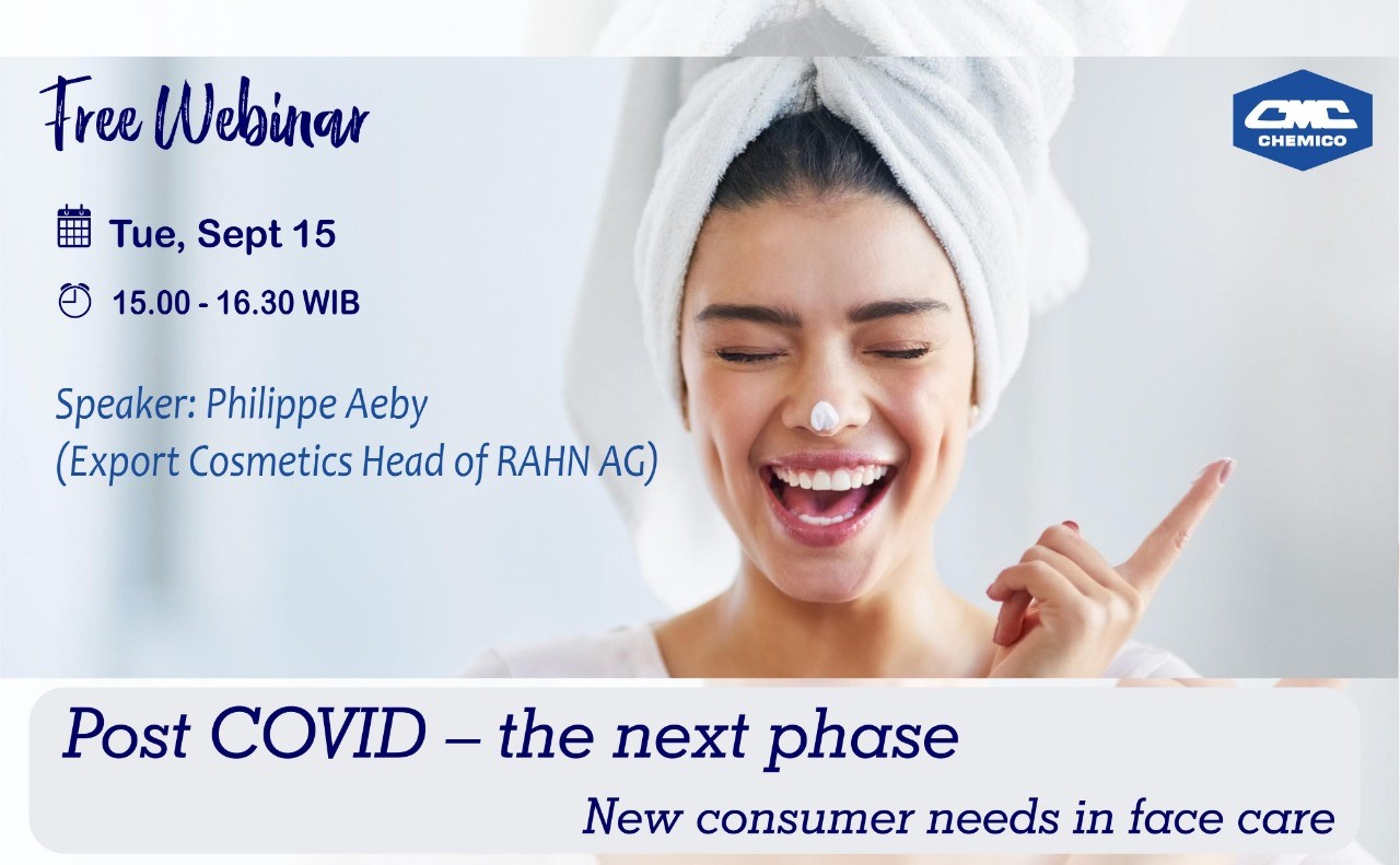 RAHN AG together with PT. Kemiko Indonesia, Jakarta Indonesia hosted a webinar entitled “Post COVID – the Next Phase, New Consumer Needs in Face Care” on September 15, 2020. The webinar was about transformation of consumer behavior after COVID-19 situation until 2021. The customers became safe and conscious on choosing product. For public hygiene, the presentation focused on using RAHN products for lifting eye area, reducing skin barrier disruption and maskne as well as for health and wellbeing.