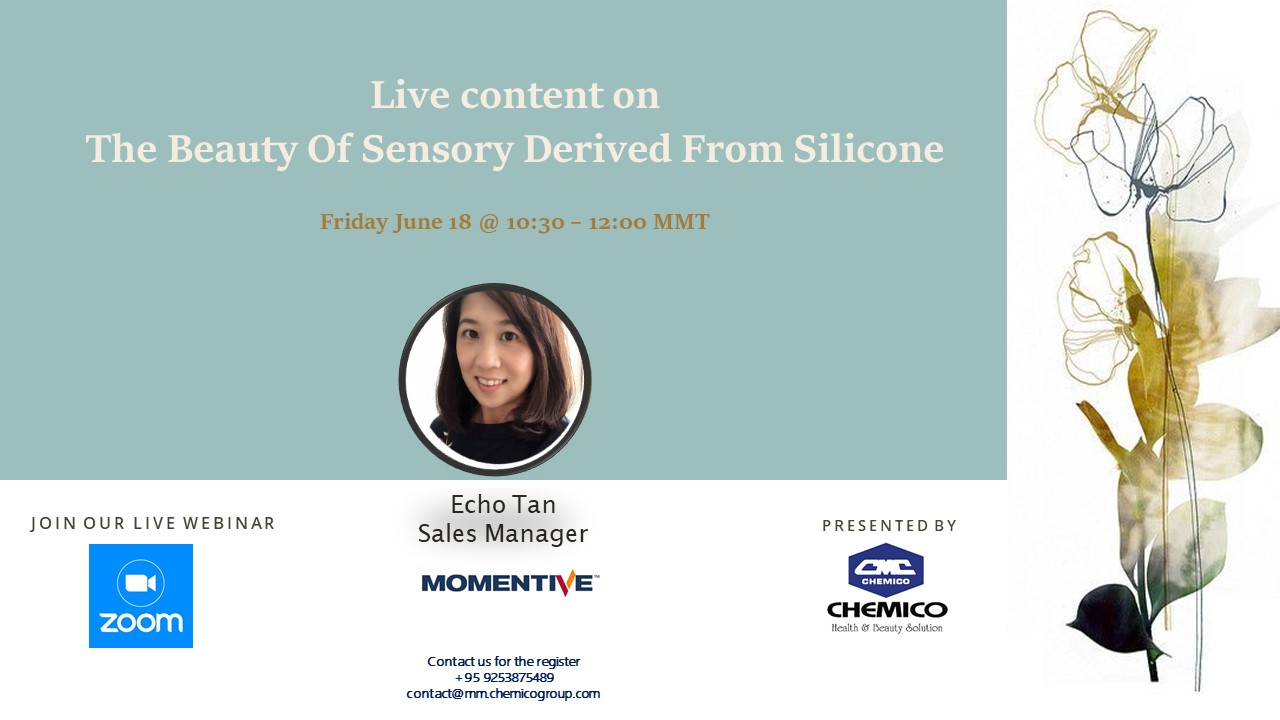 On June 18, 2021, Momentive Performance Materials Inc. together with Chemico Myanmar Co., Ltd. organized an interesting webinar focused on “The Beauty of Sensory Derived From Silicone”. The webinar talked about Momentive products and formulations with Momentive ingredients developed from Chemico Myanmar Application Center.