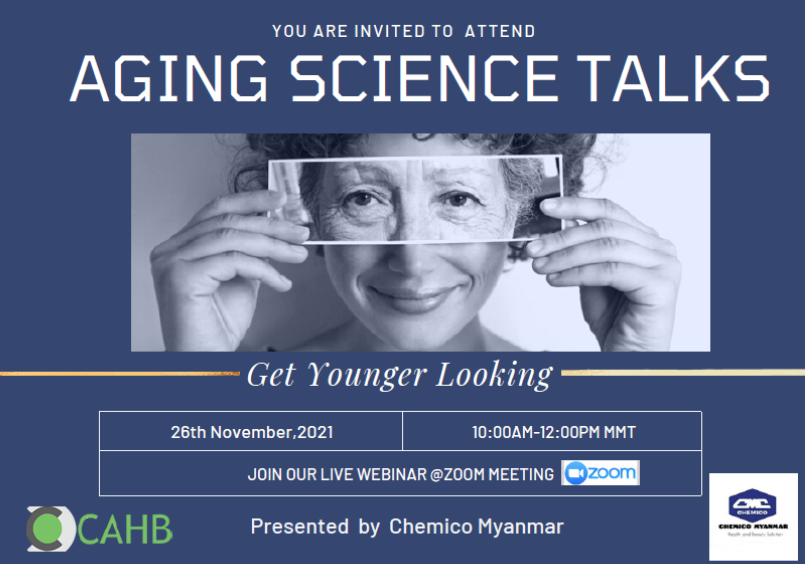 Chemico Myanmar Co., Ltd. organized a webinar entitled “Aging Science Talks” on November 26th, 2021. During the webinar, we presented anti-aging theory and product formulations.