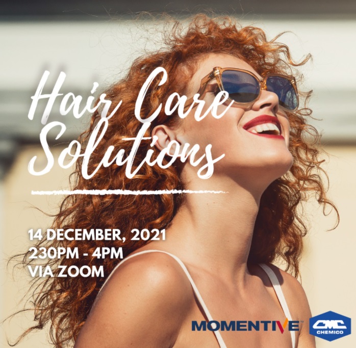 Momentive Performance Materials Inc. together with Chemico Asia Pacific (M) Sdn. Bhd., Malaysia held a webinar entitled “Hair Care Solutions” on December 14th, 2021. The first part of webinar talked about the latest hair care trends followed by presenting Momentive SMART silicone products which can delight your hair. A series of innovative silicone emulsions with unique benefits were introduced as well. Hair care prototype kit was prepared and given to customer upon request.