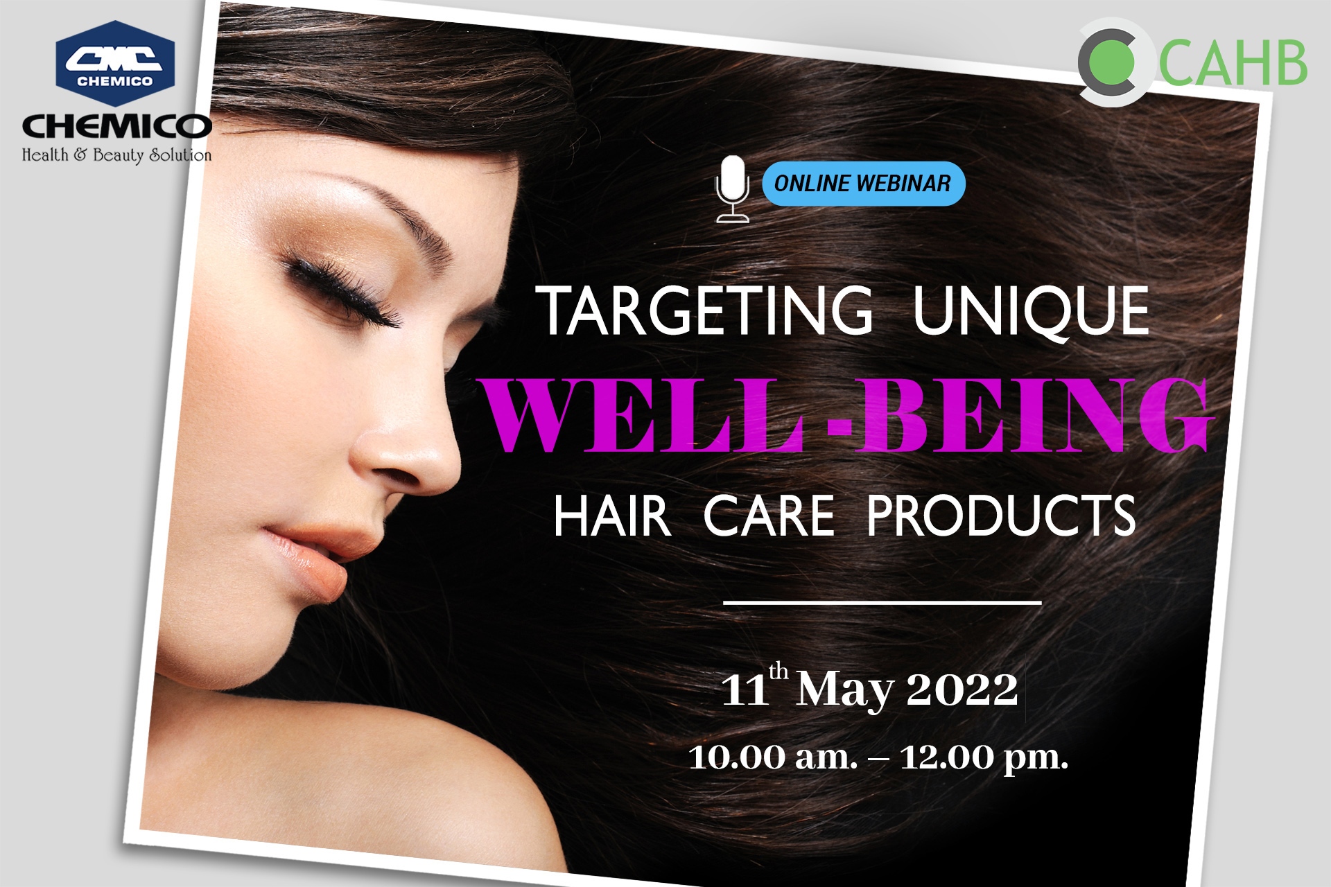 Chemico Asia Health and Beauty (CAHB) Center, Thailand, a member of Chemicogroup, held a webinar entitled "Targeting Unique Well-Being Hair Care Products" on May 11, 2022. The webinar presented the latest Hair Care Trends and examples of formulations related to the trends. Information of raw materials used in the formulations was also included in the webinar. Prototype samples will be sent to the customers upon request.