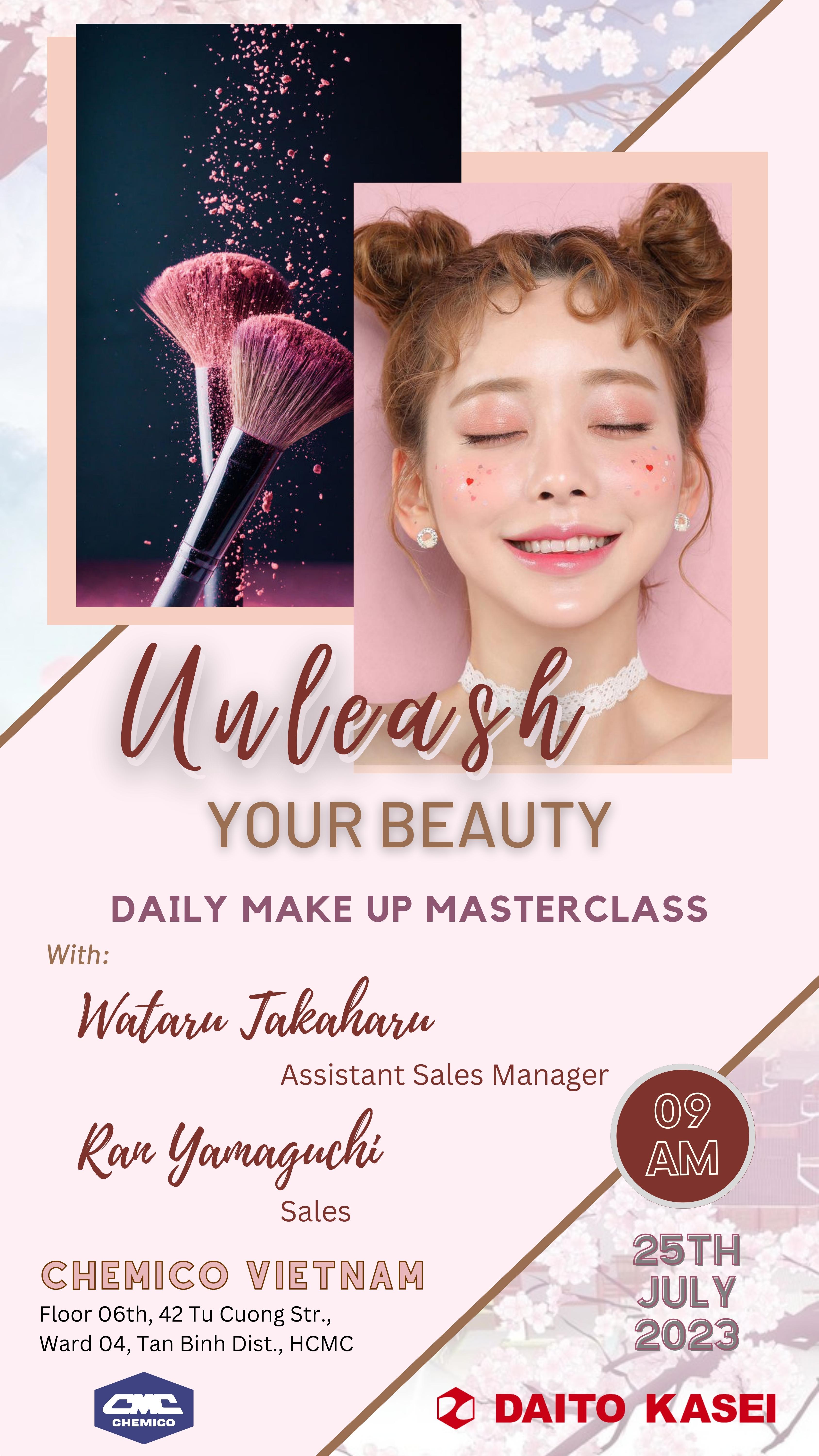 Daito Kasei Kogyo Co., Ltd., Japan in collaboration with Chemico Vietnam Co., Ltd. held a seminar under the topic “Unleash Your Beauty” on July 25th, 2023 at Chemico Vietnam Application Center. All attendees were updated makeup product trends in Japan as well as introduced the new ingredients from Daito. The most interesting part of this seminar was that each attendee could join the Daily makeup masterclass using makeup kit developed by Daito and Chemico Vietnam application teams. And finally, the customers also joined the workshop part to prepare Charcoal Cleansing Balm, Silky Finish Powder Foundation and Brilliant Shine Lip Ink.