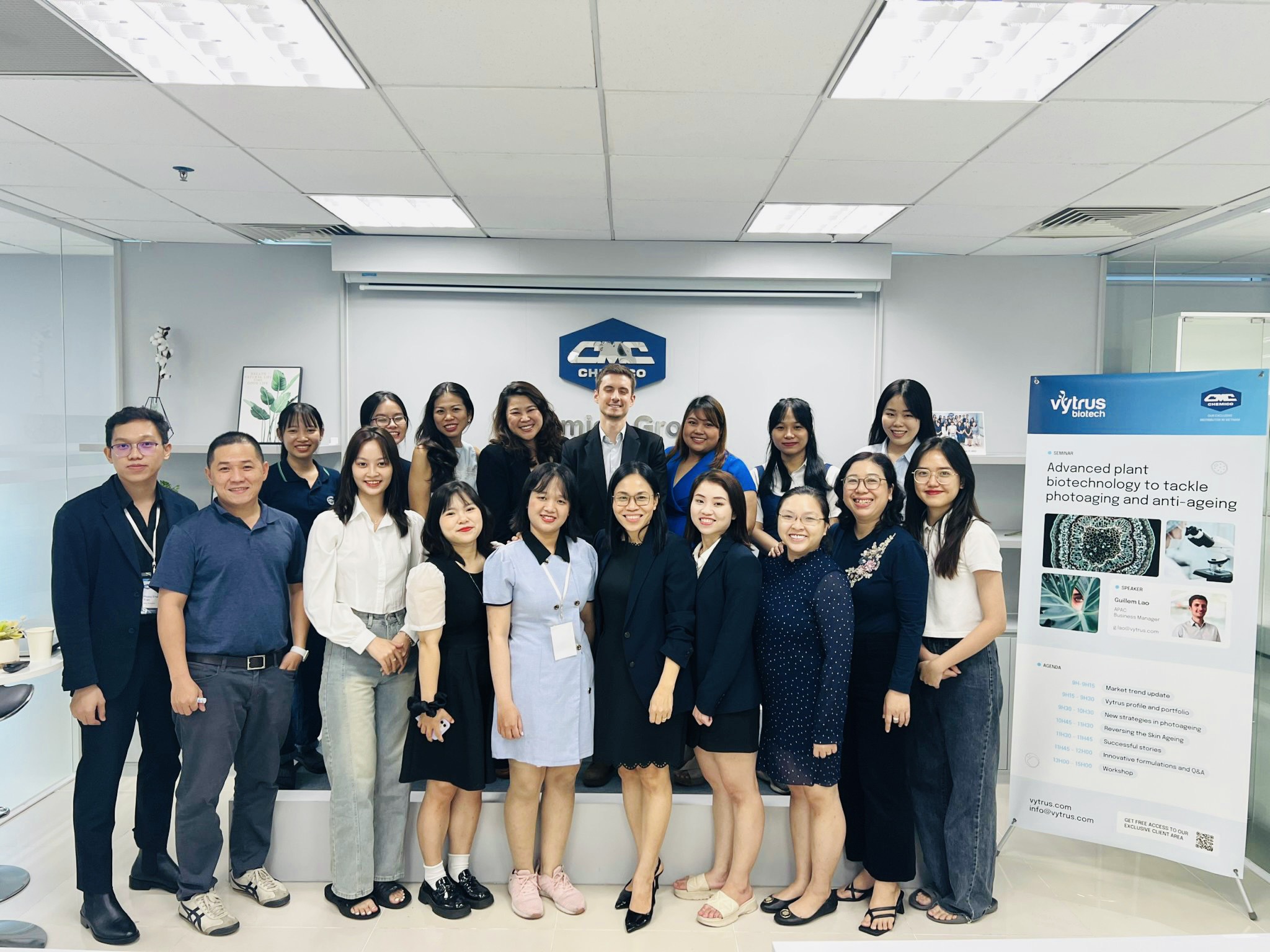 Vytrus Biotech SA in collaboration with Chemico Vietnam Co., Ltd. held a seminar on November 16th, 2023 under the topic “Advanced Plant Biotechnology to Tackle Photoaging and Anti-ageing”. This was the amazing chance to learn about the advanced stem cell technology in cosmetics from showcase to theory and workshop parts. Photobiome, Arabian Cotton, Nectaria Lithops, Quora Noni Biomics and Centella Reversa were introduced during the theory part. And, in the workshop part, all attendees had a chance to do formulations containing Vytrus Biotech materials.