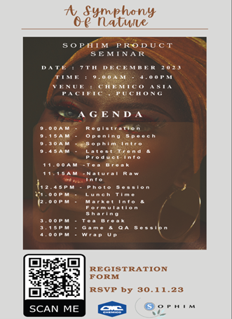 Seppic S.A., France and Pharmachem Pacific Asia. Pte. Ltd., Singapore in collaboration with Chemico Inter Corporation Co., Ltd., Thailand organized a seminar entitled “Novel Japanese Bonito Elastin Peptide with French CERAMOSIDES™ Bio-Active Phytoceramide” on November 29th, 2023......