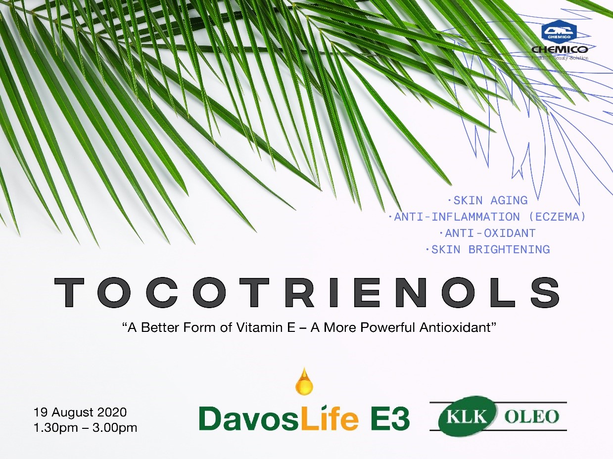 Davos Life Science, part of KLK Oleo, Singapore in collaboration with Chemico Inter Corporation Co., Ltd. held a webinar entitled “Tocotrienols, A Better Form of Vitamin E-More Powerful Antioxidant” on August 19, 2020. The webinar started with introduction .....