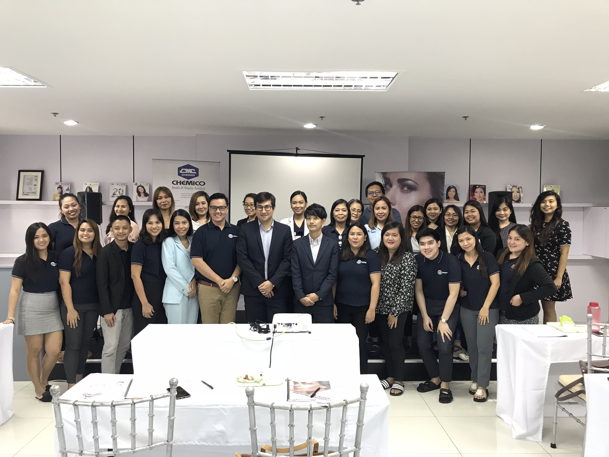 Inabata France S.A.S with Chemico Philippines Inc., held an in-house seminar entitled "Inabata-New Cosmetic Actives" on November 12, 2019 at Chemico Philippines Application Center. New active ingredients such as Etioliftine, Inacalm, Inaclear, Slim EC3 and Stemprotect were presented by Mr. Pascal from Inabata France. The customers also had the opportunity to formulate Whitening cream and Slimming lotion in the workshop activity.