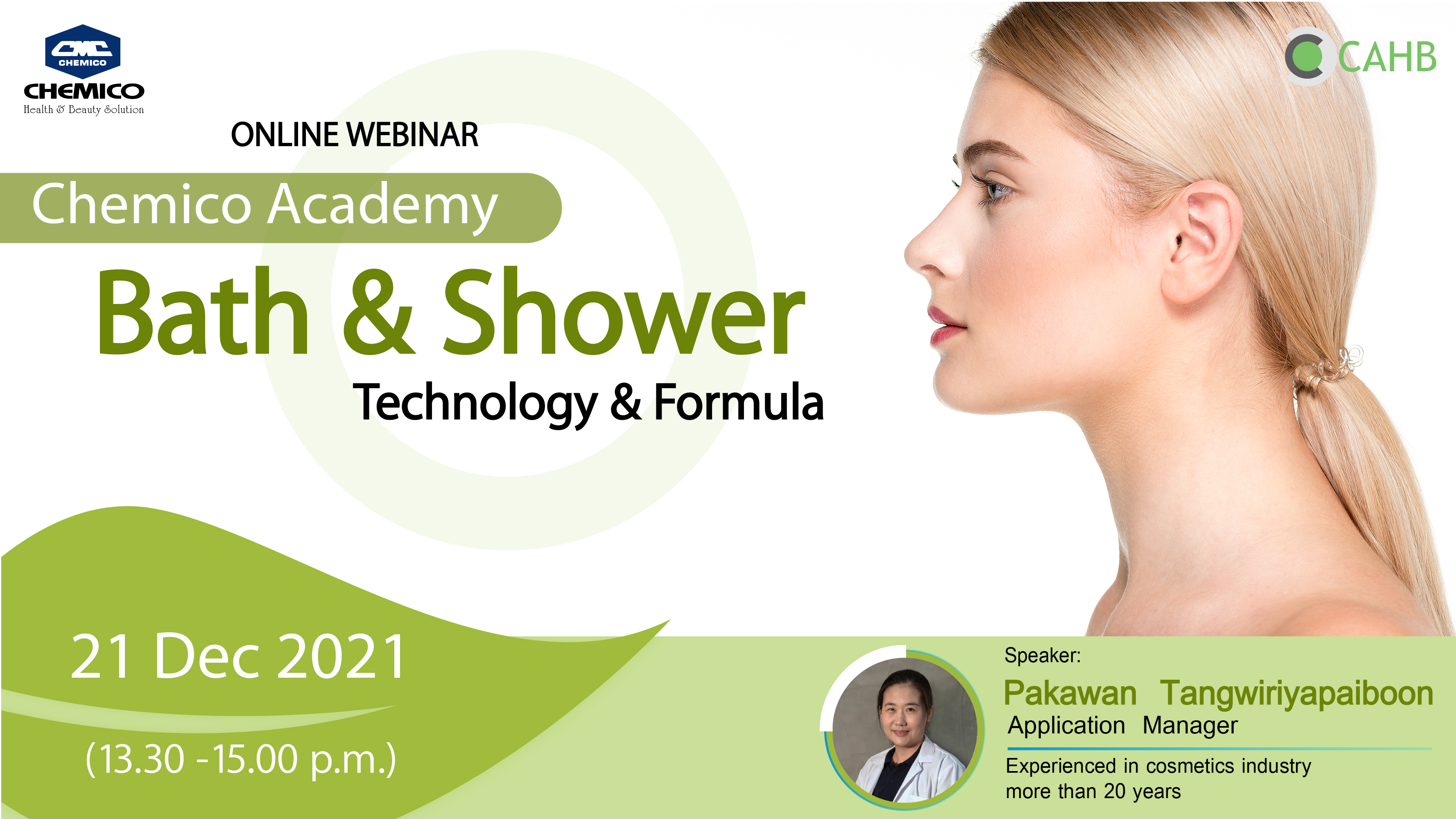 Chemico Asia Health and Beauty (CAHB) Center, a member of Chemico group held a webinar for Academy entitled “Bath & Shower Technology & Formula” on December 21st, 2021. Attendants were lecturers, professors and students. Ingredients and formulas related to the topic were introduced during the webinar.
