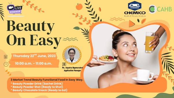 Kemiko Indonesia and PT. Chemico Surabaya in collaboration with Chemico Asia Health and Beauty (CAHB) Center, Thailand held the second webinar from Food division entitled "Beauty on Easy" on June 22th, 2023. This webinar talked about beauty food as functional food and drink that promoted an ‘inside out’ approach to beauty and healthy skin. Chemico team shared not only beauty supplement trends 2023, but also ingredients related to the trends. We shared 3 prototype formulations which were Collagen with Zeal C powder shot, Fusion collagen tea powder drink and Collagen with Zeal C chocolate for snack ready to eat. There were about 50 customers from Jakarta and Surabaya areas attended this webinar.