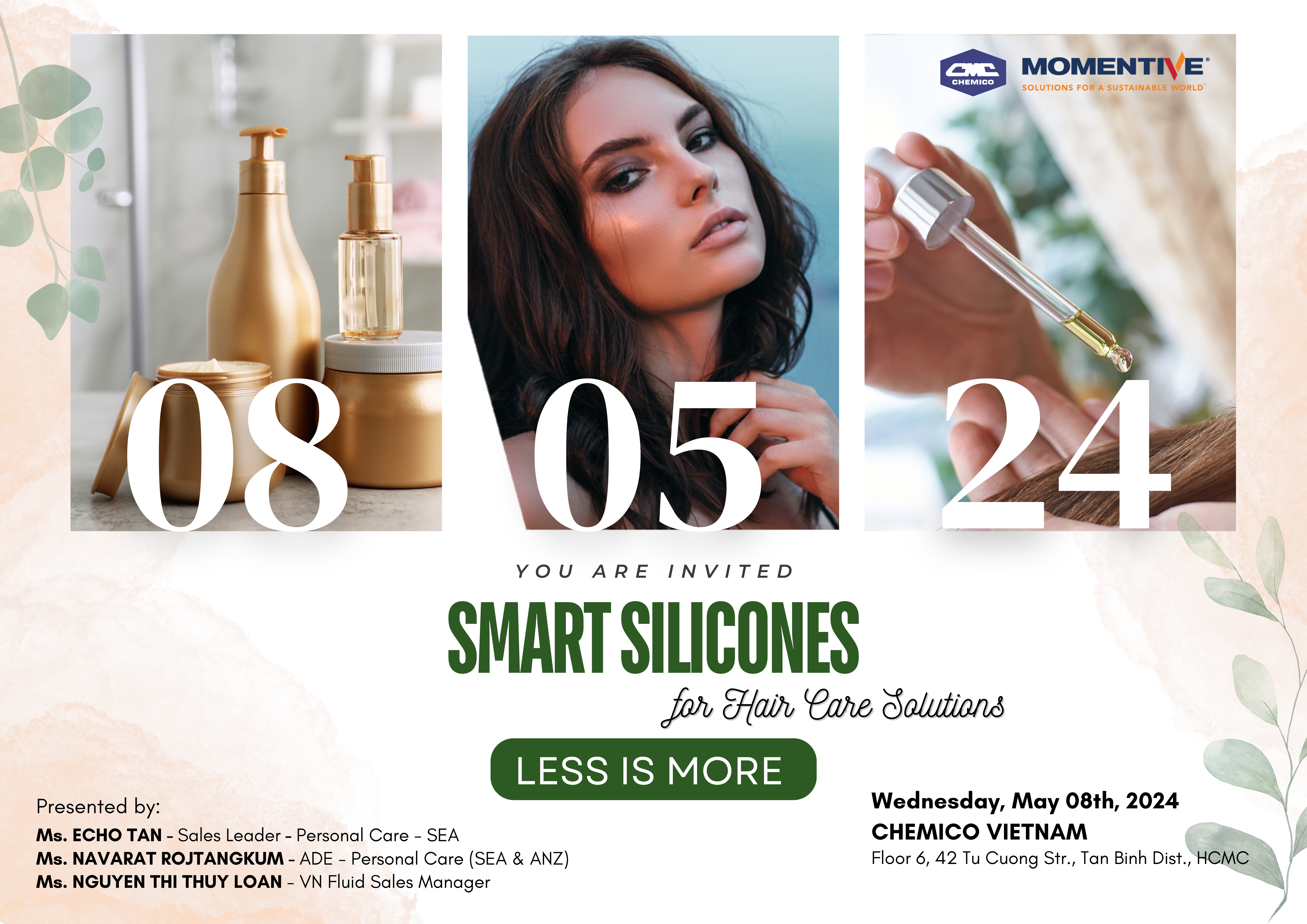 SMART SILICONES for Hair Care Solutions – Less is More (May 8th, 2024): The seminar introduced all perfect ingredients for professional hair care solutions for salon. Such ingredients were inspired by minimalism trend, but they could provide the great results. After the theory part, all attendees could experience doing formulations developed by Chemico Vietnam Application team. The seminar hopefully could provide the advanced solutions for smooth and strong hair.