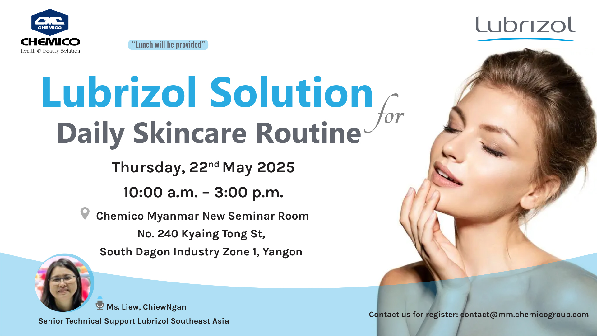 Lubrizol in collaboration with Chemico Myanmar Co., Ltd. organized a seminar on May 22, 2025 under the topic "Lubrizol Solution for Daily Skincare Routine”. This seminar shared about detailed information of Lubrizol thickener and displayed interesting formulations containing Lubrizol products.